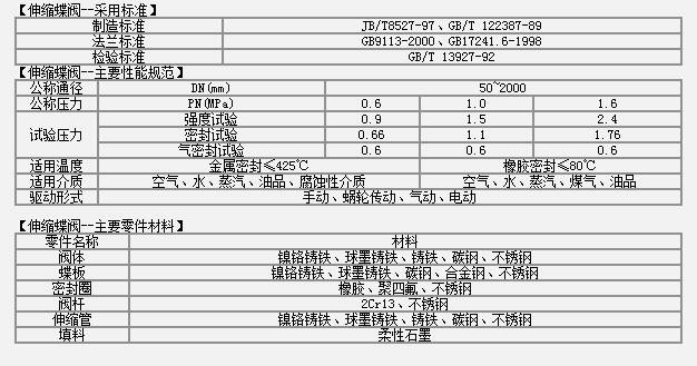 伸縮蝶閥的適用壓力:公稱(chēng)壓力PN1.6MPa;適用溫度:金屬密封伸縮蝶閥≤425℃ 軟密封伸縮蝶閥≤80℃