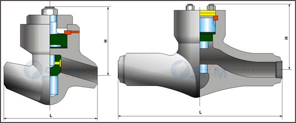 焊接止回閥適用于公稱壓力PN20.0~32.0mpa,,工作溫度:≤-540℃(其中P57 170V工作溫度為-570℃)的石油、化工、水力、火力電站行業(yè)等各種系統(tǒng)的管路上。適用介質(zhì)為:水、油品、蒸汽等。